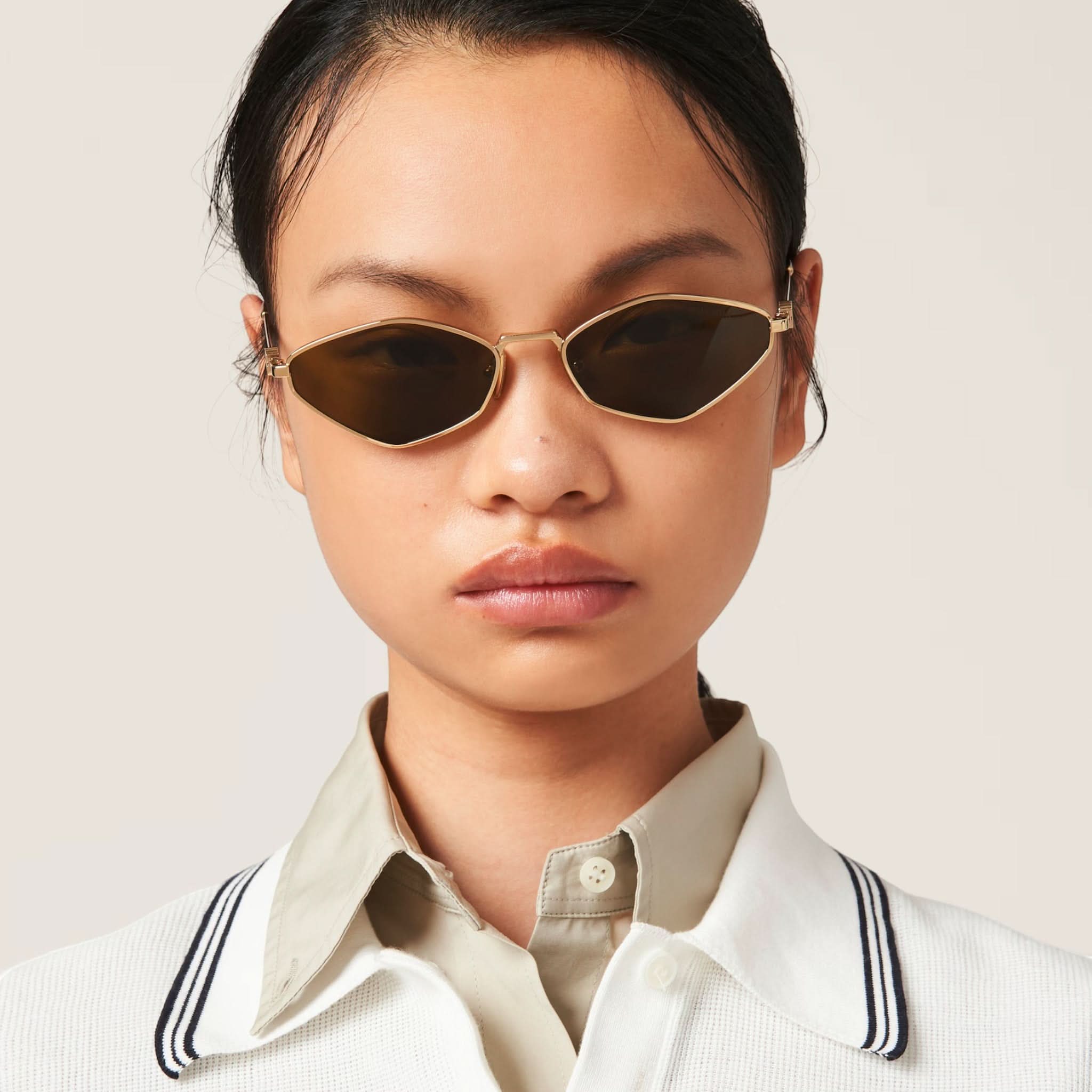 Tasarım: Zarafeti ve korumayı bir araya getiren göz alıcı bir dokunuş! Metal güneş gözlüğü, ince ve zarif çerçevelerle çevrelenmiş düzensiz ön kısmıyla dikkat çekiyor. İkonik dikey logosuyla süslenmiş şık saplar, bu gözlüğe benzersiz bir stil katıyor. %100 UVA/UVB koruması sağlayan ve ayarlanabilir burun yastıkları ile her yüz tipine uyum sağlayan bu çerçeve, dereceli lenslerle de uyumludur.