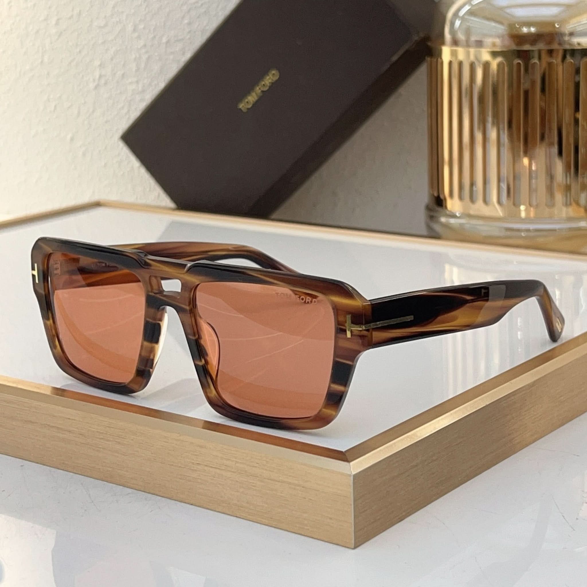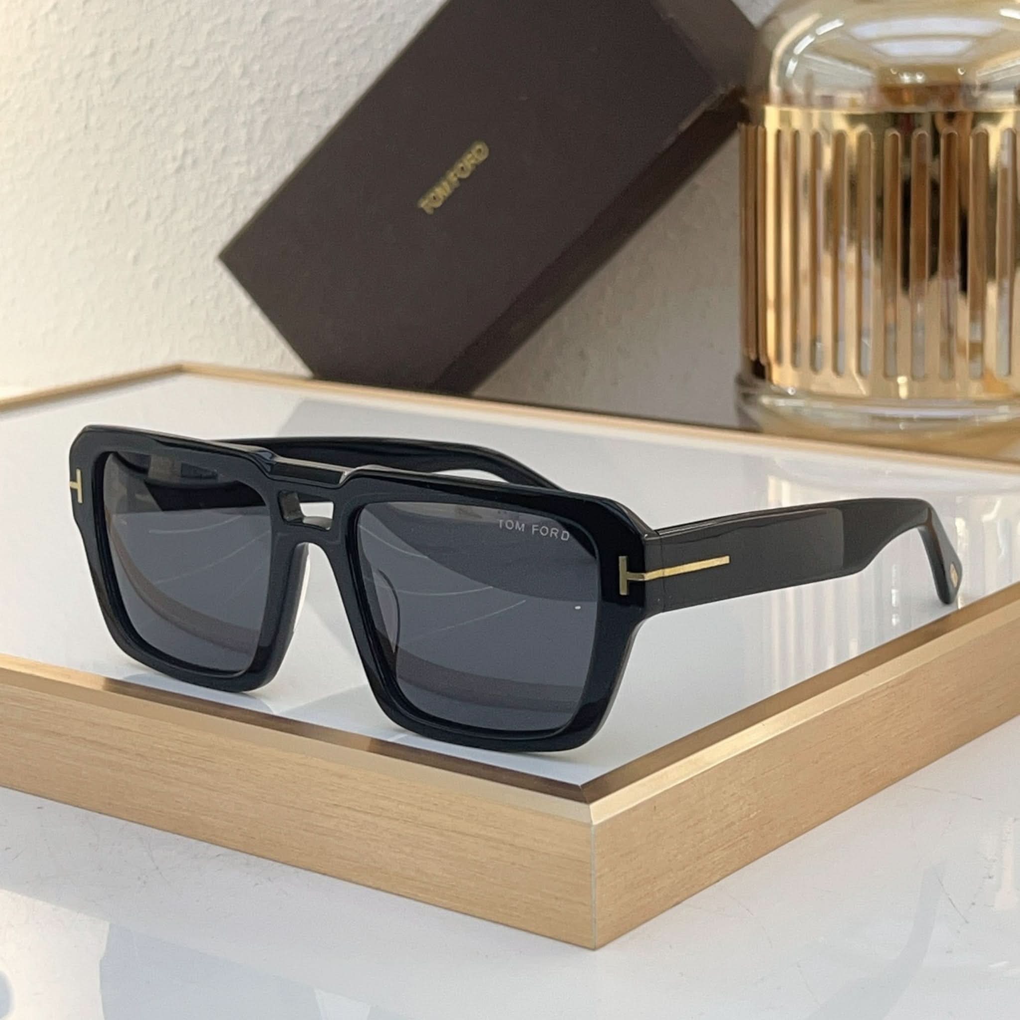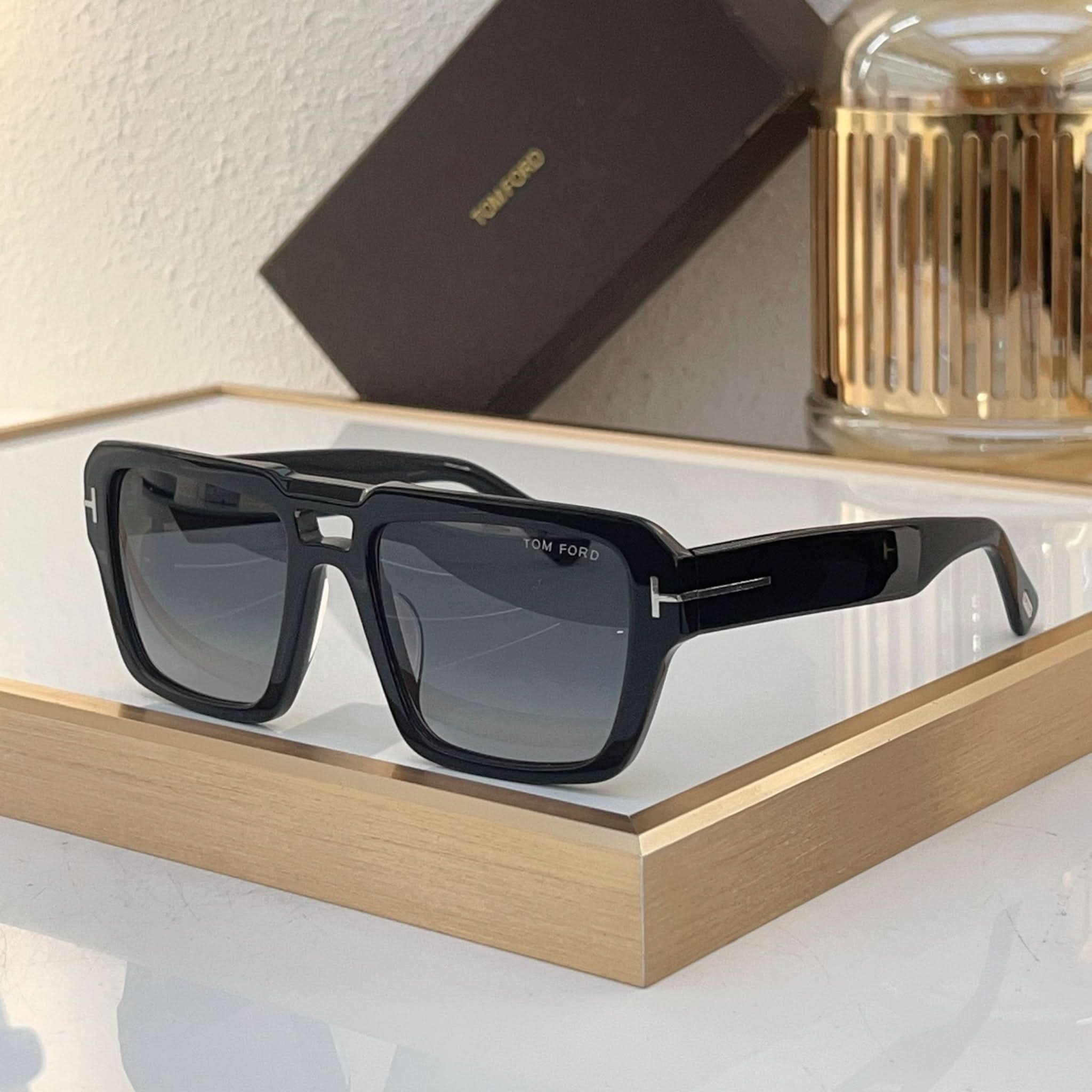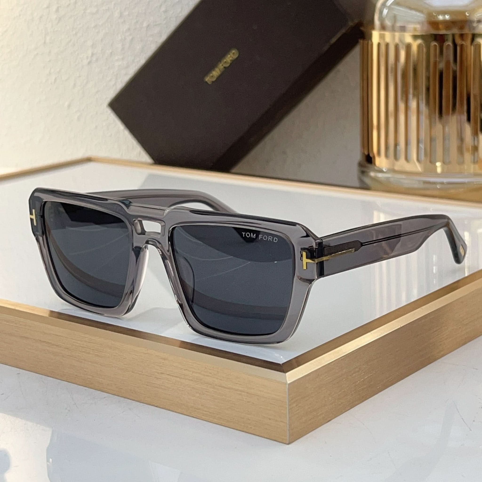Tasarım: Bu modern kare çerçeveli gözlük, ince çift köprüsü ve göz alıcı şakakları ile dikkat çeker. Şakaklarda metal T logosu bulunan parlak biyo-bazlı asetat stiline sahiptir. İtalya'da üretilen bu gözlükler, şıklık ve kaliteyi bir araya getirir.